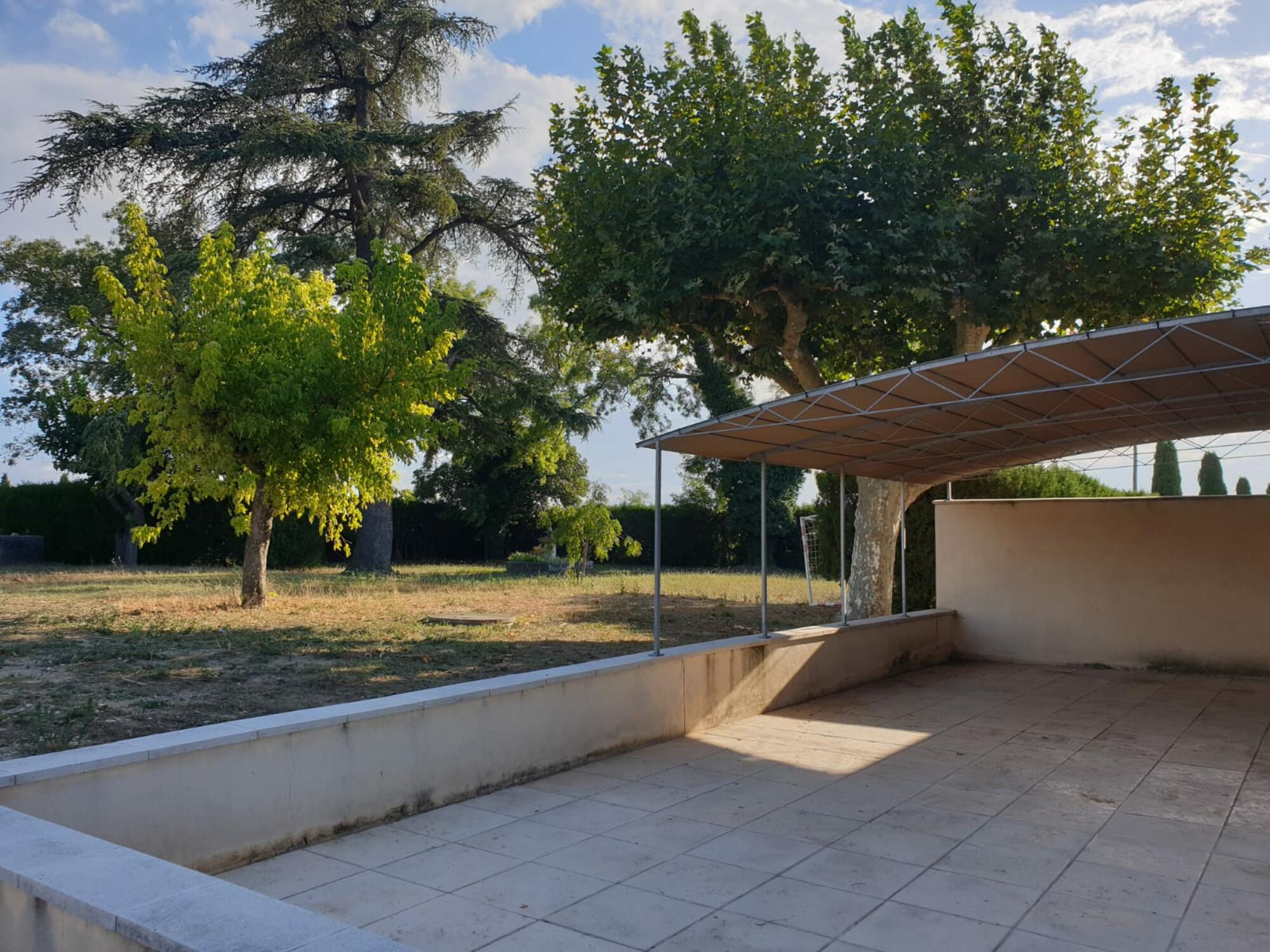 Grande terrasse couverte par toile tendue, sur un terrain arboré de 1000 m², non clos avec bassin ancien. Le mas est composé au rez-de-chaussée : hall d'entrée, grande cuisine aménagée d'environ 35 m² avec porte-fenêtre donnant sur la terrasse, séjour-salon, wc, rangement sous l'escalier. Au 1er étage : 5 chambres dont une suite parentale avec salle d'eau (douche à l'italienne, double vasque sur meuble), 2ème salle d'eau (douche à l'italienne, double vasque sur meuble), wc. Le logement est équipé d'un chauffage central au fuel. Eau du forage.