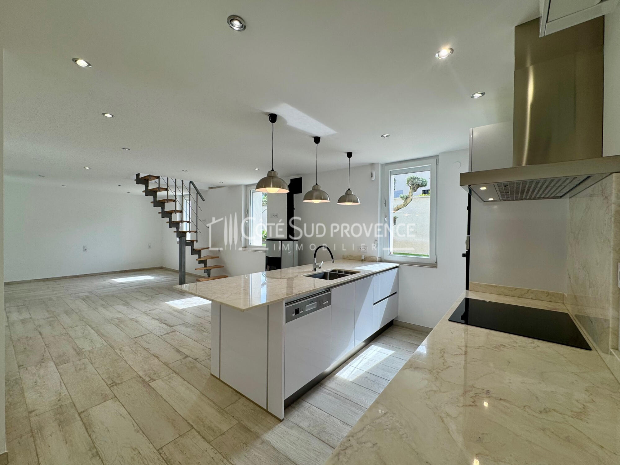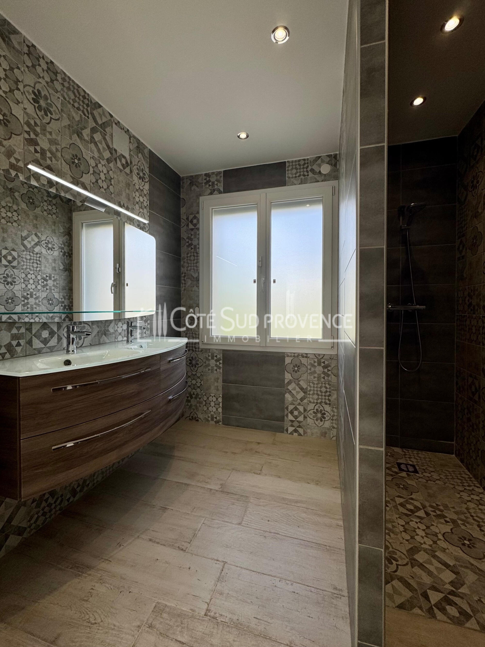Très belle villa d'une surface habitable de 124,27m² habitable + garage double isolé et carrelé avec salle d'eau et wc, coin cuisine été avec accès piscine direct.