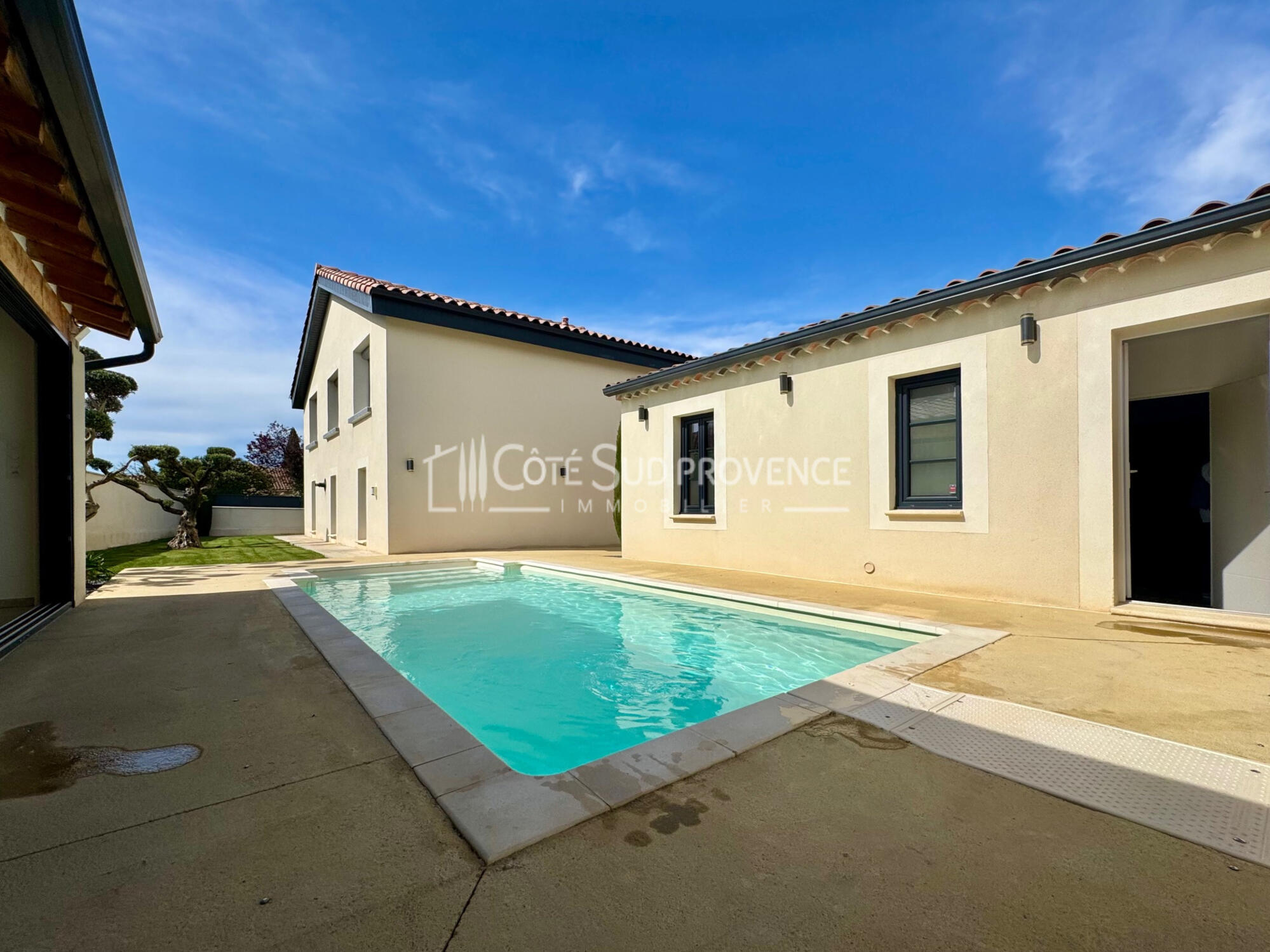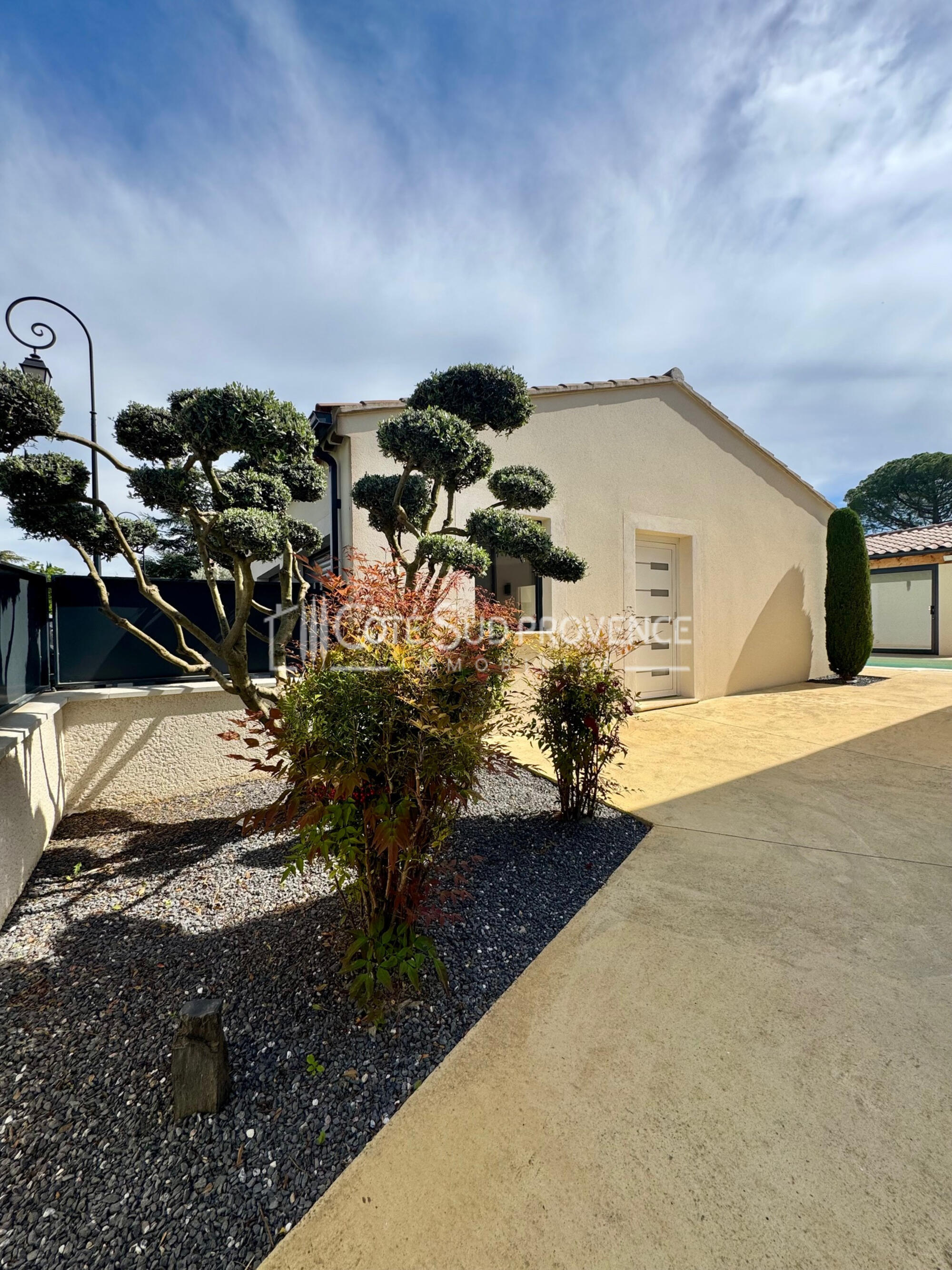 Portail automatique, arrosage automatique, jardin, eau du canal, fibre, clim réversible, volets roulants électriques, local cumulus.
